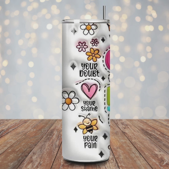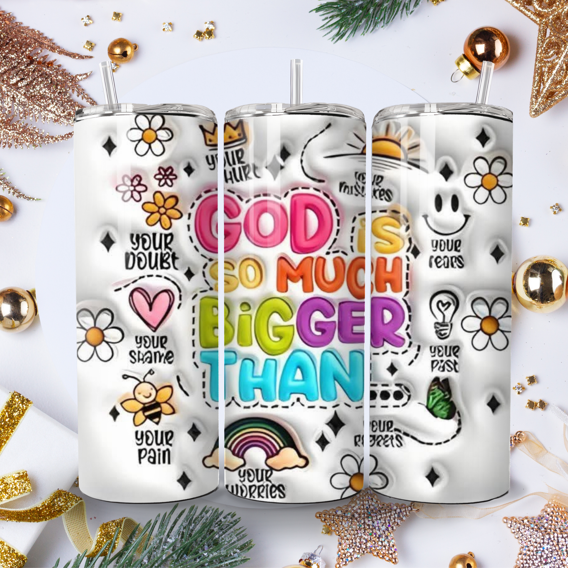 Brighten your day with this beautiful uplifting tumbler featuring colorful lettering, cute doodles, smiling icons, rainbows, daisies, and the encouraging message “God Is So Much Bigger Than…” surrounded by reminders of doubts, fears, worries, and the things you’re letting go ✨🌼💛 This cup gives total positive, cheerful, faith-filled vibes while keeping your drinks hot or cold. Perfect for daily motivation, morning coffee, journaling time, or gifting someone who needs a little sunshine and encouragement 💕🙏