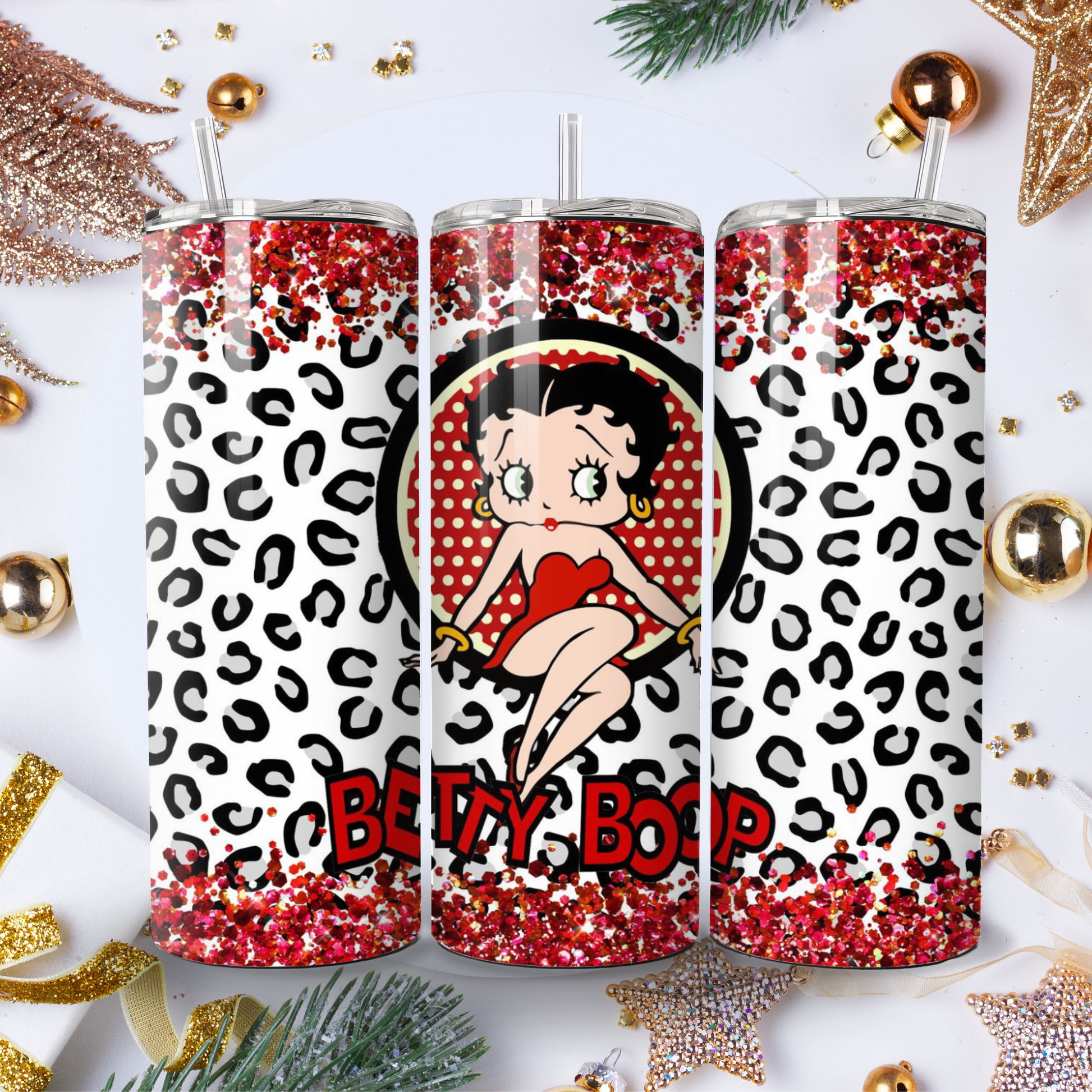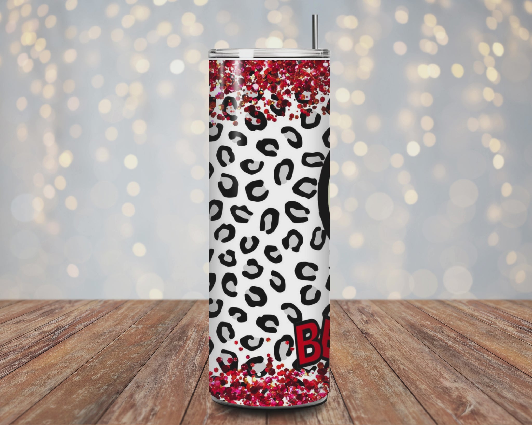 โค๏ธ Leopard Glam Pin-Up 20 oz Tumbler โ Red Glitter Babe Cup